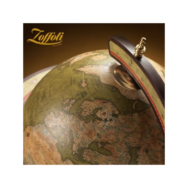 La sphère est décorée à l’extérieur d’une carte reproduisant fidèlement les cartographies du XVIIIème siècle, dans des tons "Vieux blanc" en totale harmonie avec la configuration de son piétement.