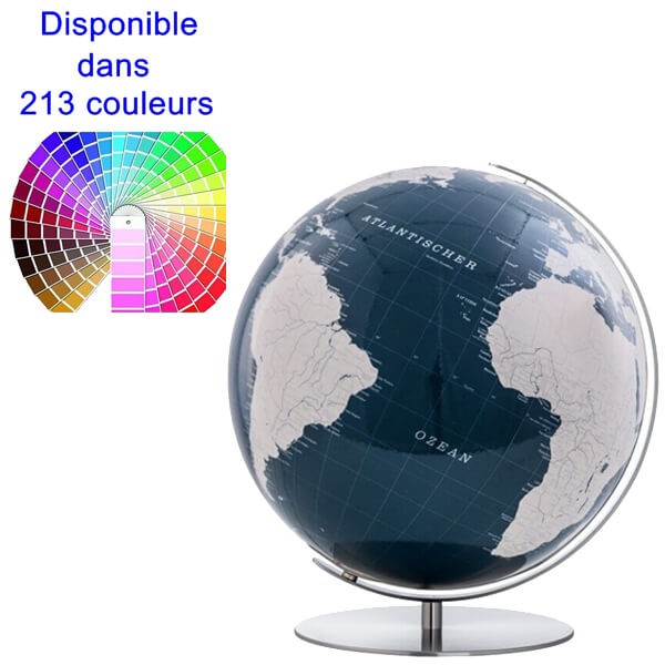 Il est maintenu par un socle et un méridien en acier inoxydable pour lui donner un très bel effet, qui contraste avec l'aspect brillant de la sphère.